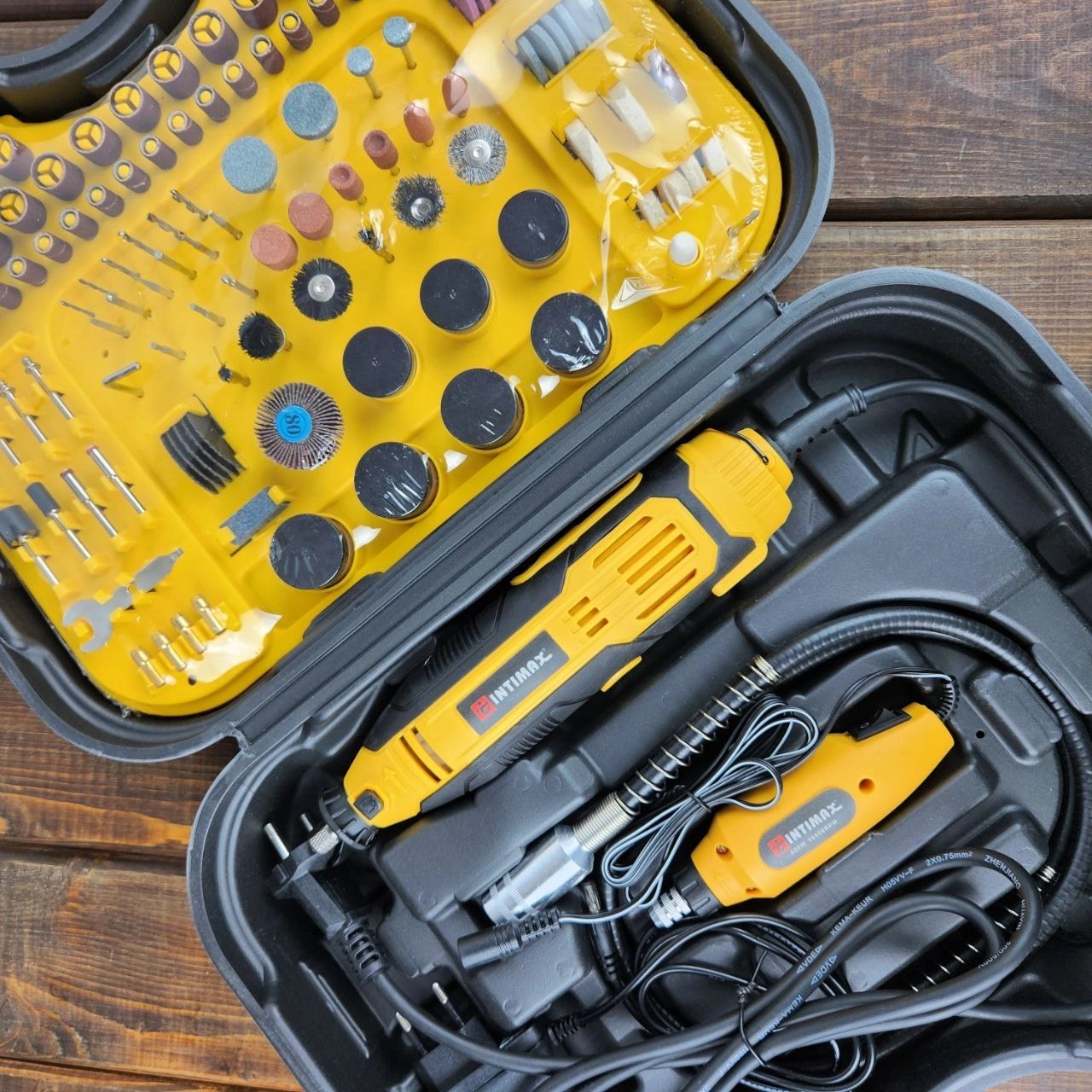 این مجموعه 200 عددی اینتیمکس که یکی از محصولات اینتیمکس است، مجهز به دو دستگاه بزرگ و کوچک می باشد که شما را از خرید دیگر تجهیزات کاملا بی نیاز می کند. از بهترین قابلیت های این ابزار کنترل سرعت و قابلیت تغییر زاویه می باشد. قابلیت تغییر زاویه برای کاربر این امکان را برای کاربر فراهم می کند. که به راحتی در زاویه های متفاوت برش های دلخواه را انجام دهد. وزن سبک 0.5 کیلوگرمی و ابعاد مناسب 20x3x3 سانتیمتر سبب راحتی کاربر هنگام کار با دستگاه در مدت زمان طولانی مدت می شود. همچنین جابجایی را راحت تر می کند. ابزار فروشی عالمی ارائه دهنده انواع ابزار برقی با بهترین قیمت و کیفیت